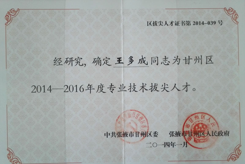 2014-2016年王多成甘州區(qū)專業(yè)技術…