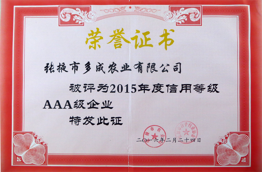 熱烈祝賀張掖市多成農業(yè)榮獲2015年度信用等級AAA企業(yè)稱號 (2016-02-26)